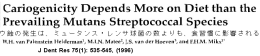 ウ触の発生は、ミュータンス・レンサ球菌の数よりも、食生活に影響される。 J Dent Res 75(1): 535-545, (1996) |